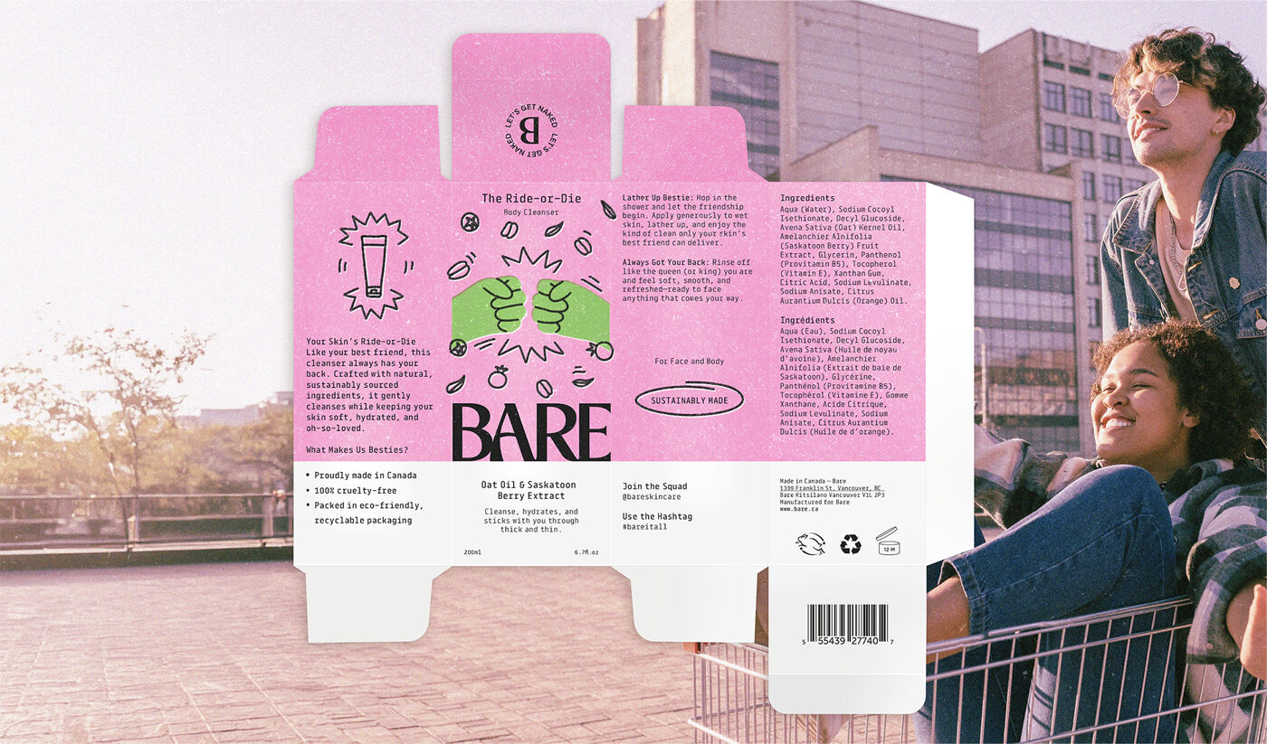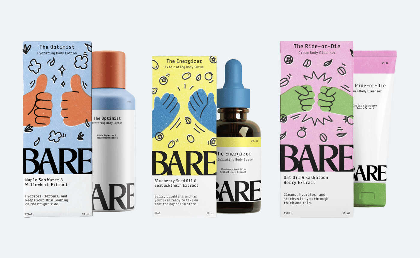 Emily Norris-Jones – Honourable Mention, Packaging Design (Series) for Bare – Sustainable Skincare, created in Dimensional Design with Anne Ahmad Burnett.